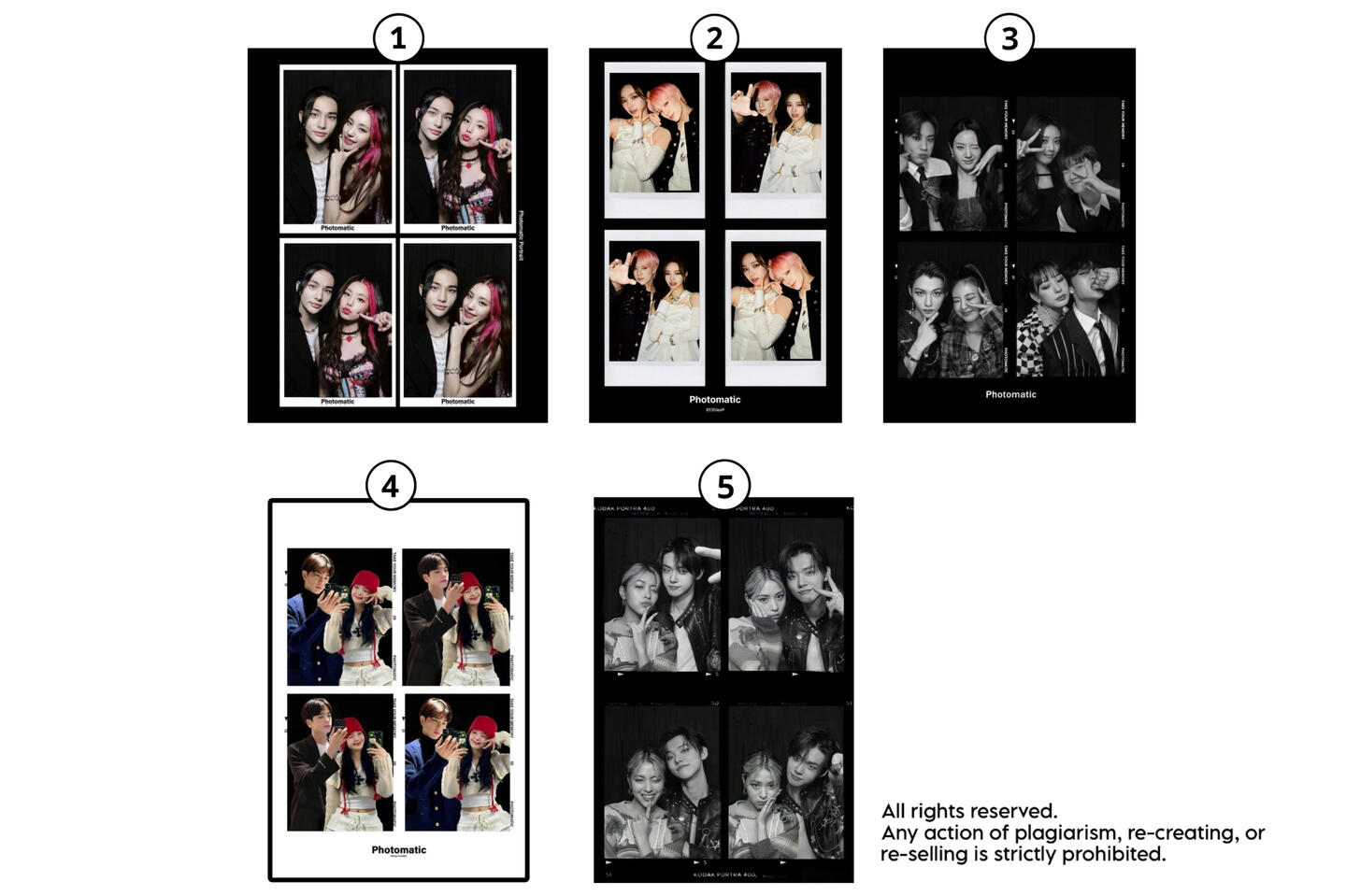 CATATAN:— Anda bebas pilih bentuk frame Photomatic yang anda suka. Manips bisa dibuat BNW ataupun berwarna (tidak harus sesuai contoh dibawah).— Photomatic isi 4 manips tidak selalu menggunakan baju yang sama. Tergantung ketersediaan foto kedua Idols.